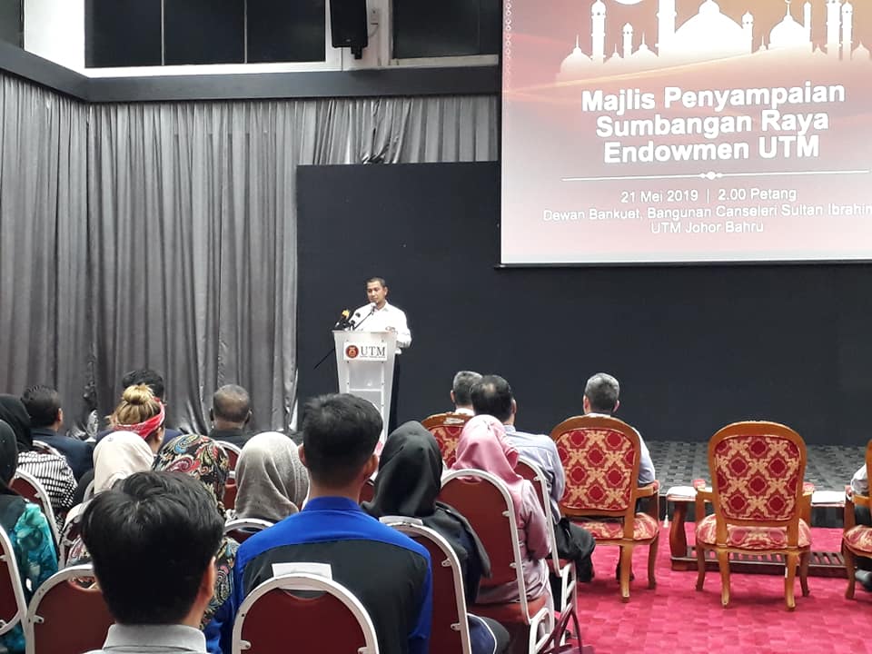 UNIT ENDOWMEN UTM menyampaikan Bantuan Hari Raya 1440 Hijrah kepada 100 orang pelajar Bottom 40 UTM. Majlis penyampaian akan disempunakan oleh YAB Dato’ Dr. Sahruddin bin Jamal, Menteri Besar Johor pada 21 Mei 2019, Jam 2.00 petang bertempat di Dewan Bankuet, Bangunan Canseleri Sultan Ibrahim, UTM Johor Bahru. Turut hadir dalam majlis tersebut adalah Prof. Datuk Ir. Dr. Wahid Omar Naib Canselor UTM, Timbalan-Timbalan Naib Canselor, pegawai-pegawai kanan UTM, Prof. Dr. Mohd Zaki bin Kamsah Pengerusi Bahagian Pemajuan, Prof. Madya Dr. Yusof bin Boon Pengarah Endowmen, dan tetamu undangan.