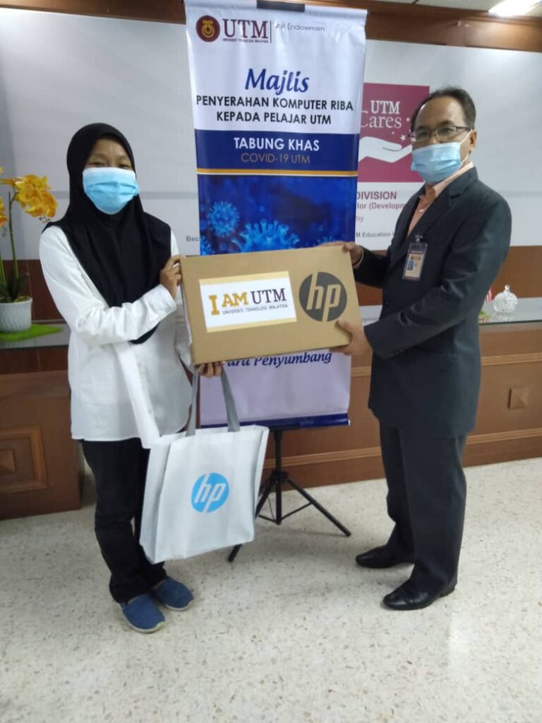 Pihak Universiti Teknologi Malaysia (UTM) telah mengadakan majlis penyerahan bantuan khas pada ogos 2020 yang lalu kepada pelajar UTM (B40) yang bermasalah dan kurang berkemampuan dalam tempoh pasca Covid19 iaitu pinjaman tablet @ komputer riba sebanyak 25 unit dan bantuan khas kewangan kepada 100 orang pelajar UTM. Pinjaman komputer dibuka semula dan ditawarkan Terhad 15 pelajar sahaja.