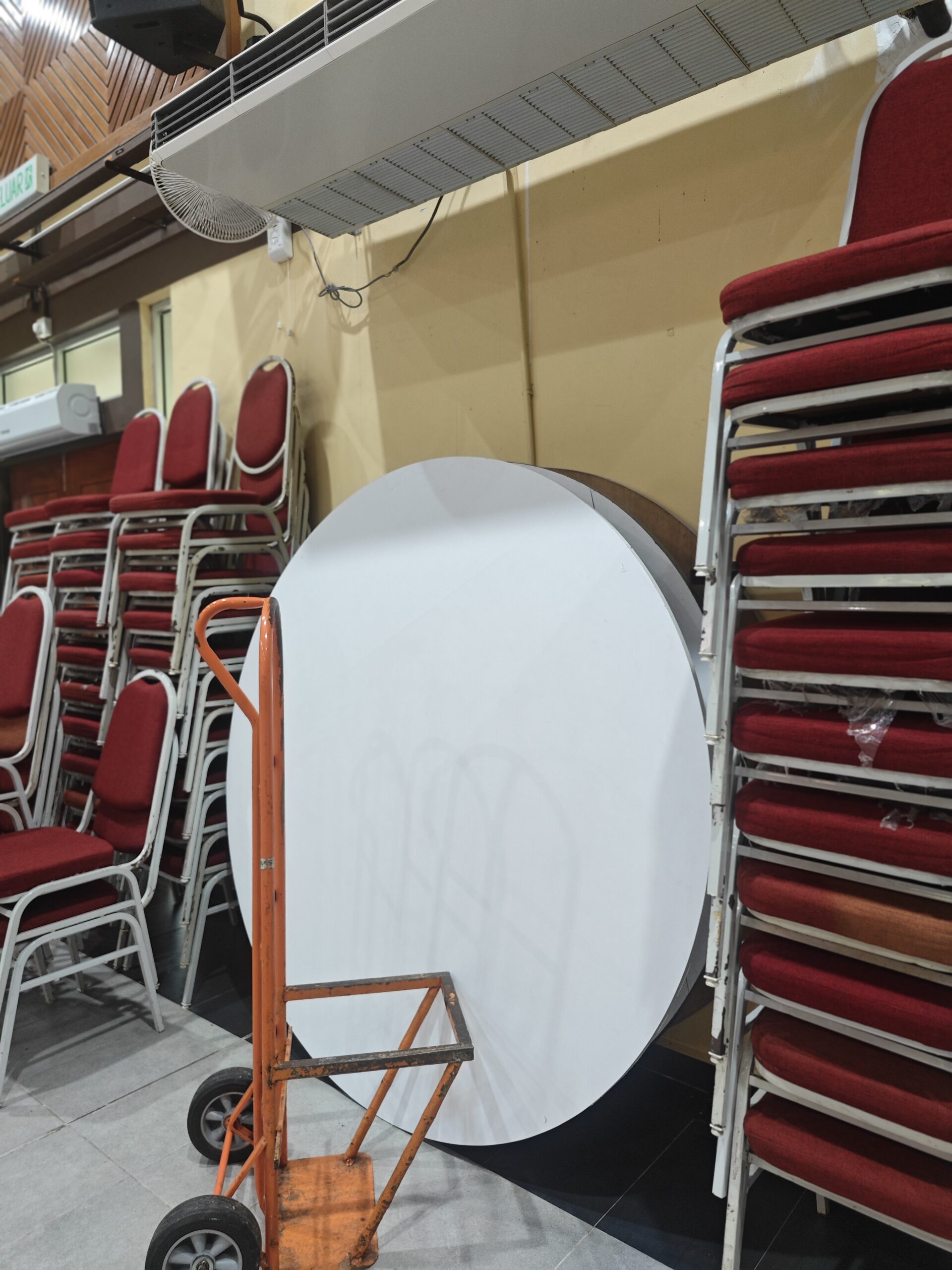 - Round banquet tables (30 units)